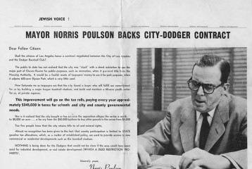 Los Angeles Mayor Norris Poulson supported the Dodgers in the “Proposition B” debate in 1958, as this brochure explains.