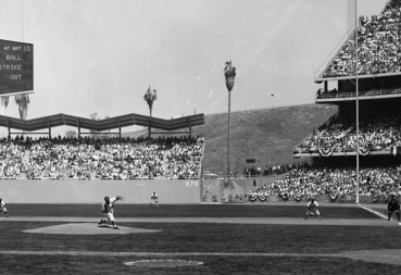 O’Malley scrambled to make temporary arrangements for Dodger home games while Dodger Stadium was to be constructed. One possibility that O’Malley investigated late in 1957 was the famed Rose Bowl in Pasadena, but the exorbitant cost of converting the football field to a baseball diamond made it untenable. O’Malley had taken title to Wrigley Field, located at 42nd and Avalon in Los Angeles, on February 21, 1957 in an important exchange with Phil Wrigley, owner of the Chicago Cubs. Although it did give the Dodgers a place to play in a pinch, O’Malley still left his options open as the Los Angeles Memorial Coliseum was also on his list.