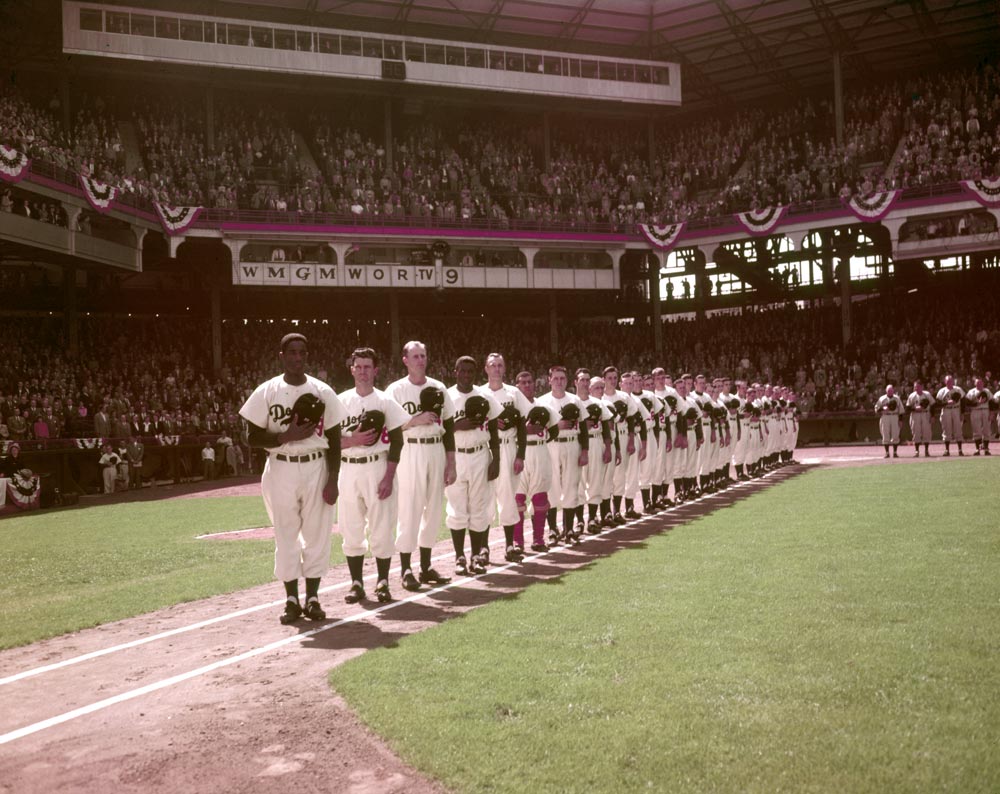 For the first time in Major League Baseball history, the majority of the starting lineup was diverse, as the Dodgers started Jackie Robinson at third base, Jim Gilliam at second, Roy Campanella as catcher, Sandy Amoros (Cuban) in left field and Don Newcombe as the pitcher.
