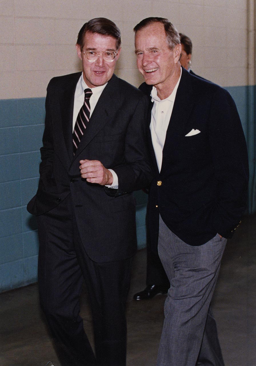 June 14, 1991, Dodger Stadium, Dodger President Peter O’Malley with 41st U.S. President George H.W. Bush. Bush is the only sitting U.S. President to attend a game at Dodger Stadium.