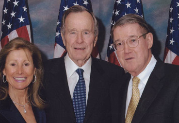 March 20, 2015, opening of the exhibit “Baseball: America’s Presidents, America’s Pastime,” at the George W. Bush Presidential Library at Southern Methodist University in Dallas, Texas. (L-R) Annette O’Malley; former U.S. President Bush and his wife Laura; and Peter O’Malley, who loaned a dozen items to the Bush Presidential Library for the exhibit.