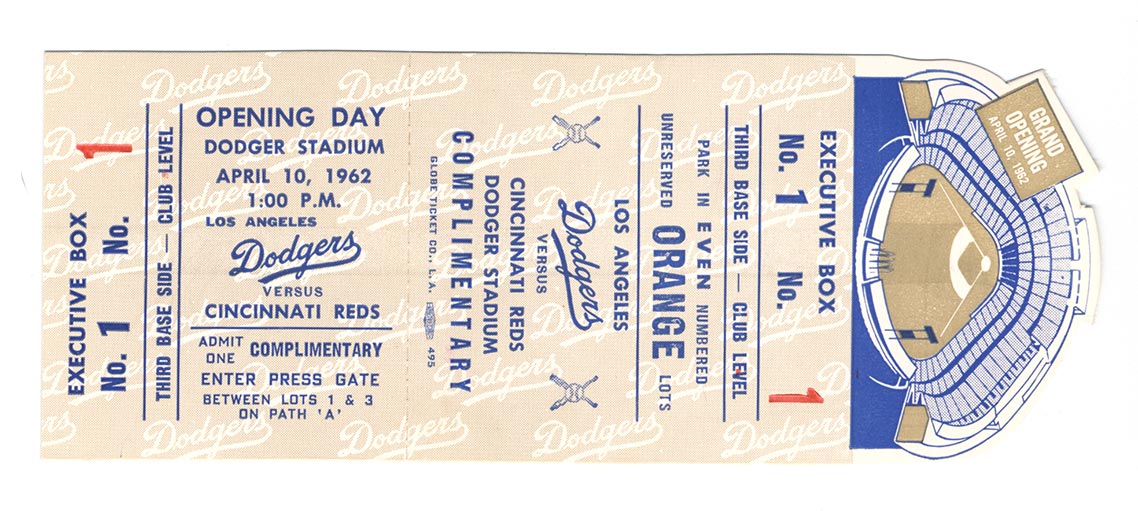 Walter O’Malley’s Executive Box ticket for the Grand Opening of Dodger Stadium on April 10, 1962.