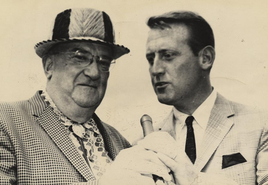 Vin Scully interviews Walter O’Malley at Dodgertown in Vero Beach, FL. O’Malley once responded to the question, “Who is the greatest Dodger?” by replying, “It’s Scully.”
