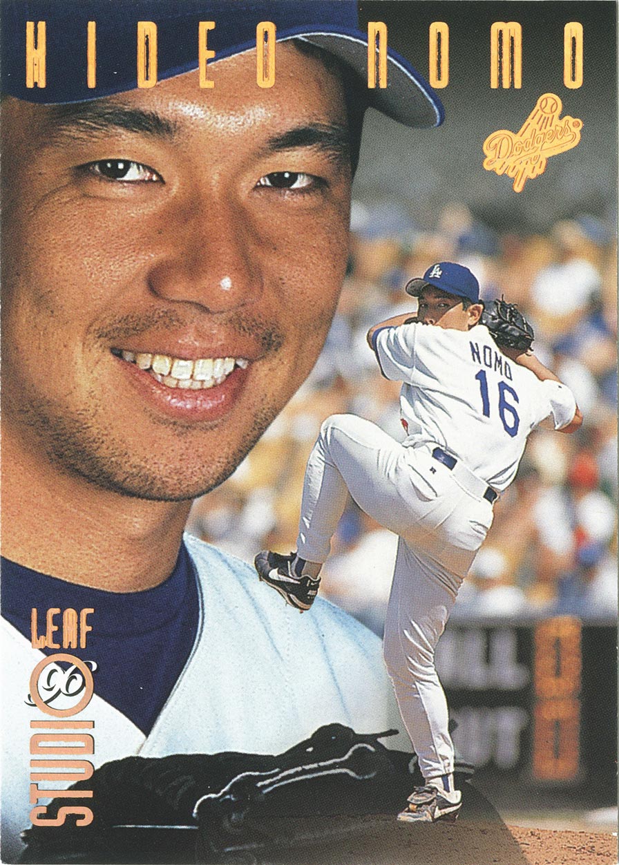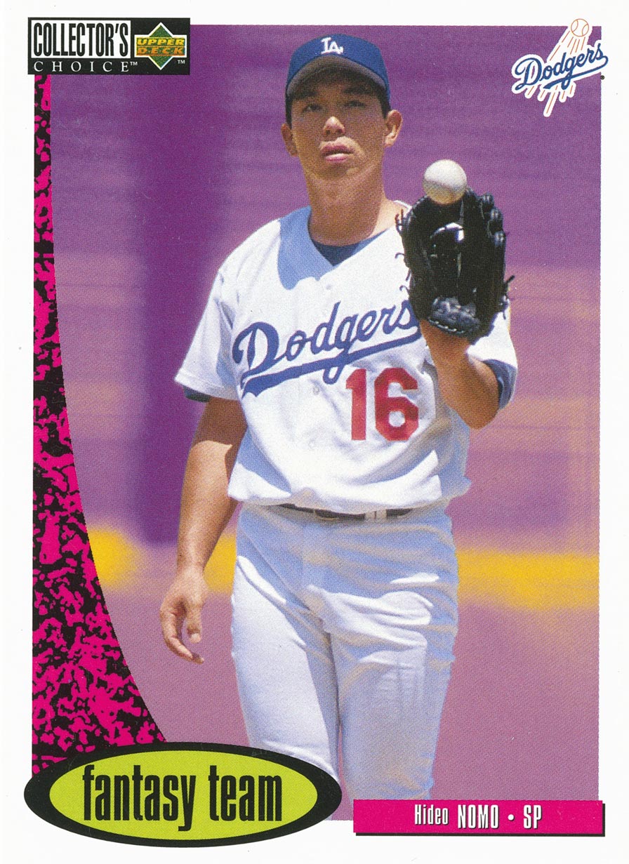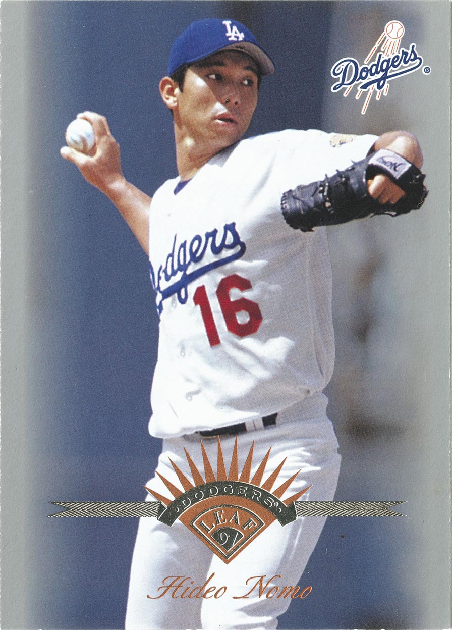 Hideo Nomo began his first season in Major League Baseball with the Dodgers in 1995. His successful first season started “Nomomania,” as baseball fans throughout the world were fascinated by the “Warrior” and his twisting, turning, pitching wind-up. Nomo was named starter for the 1995 All-Star Game, a rare feat for a rookie, and was elected 1995 National League Rookie of the Year. Throughout his long and historic career, Nomo played 12 seasons, including 7 with the Dodgers. Hundreds of different baseball cards were produced showing the first Japan-born player to reach the majors in 30 years. He wound up with 123 victories and was inducted into the Japan Baseball Hall of Fame in 2014.