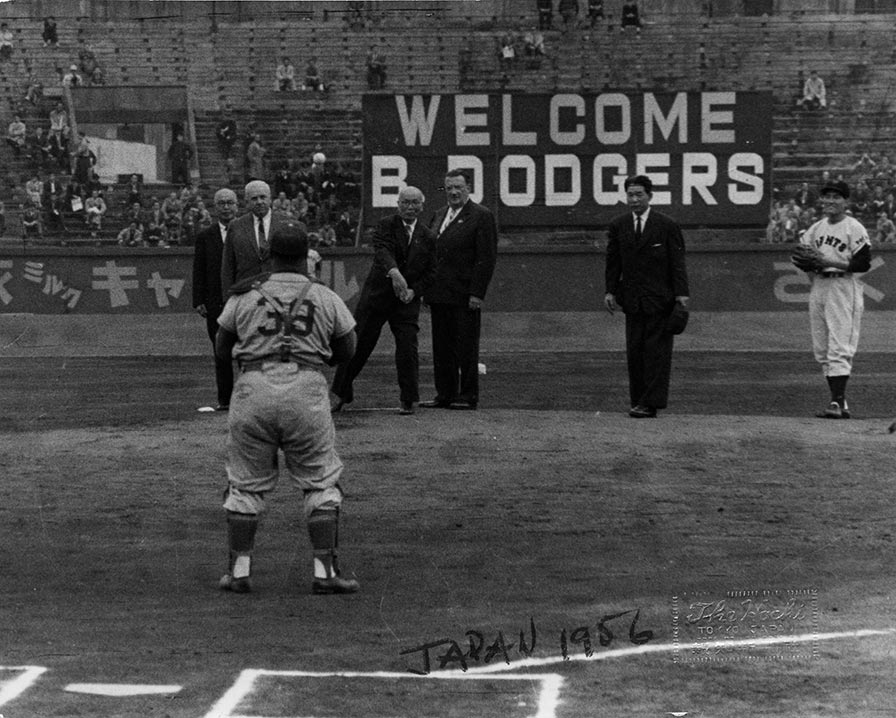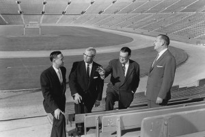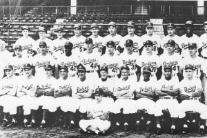 • Dodger pilot Lewis Carlisle (in suit) with the 1971 Los Angeles Dodgers and their 720-B jet plane named the “Kay ‘O II”.